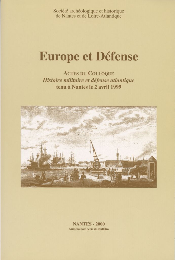 Europe et Défense. Actes du colloque Histoire militaire et défense atlantique, tenu à Nantes le 2 avril 1999 (organisé par le CRHMA – Centre de Recherches sur l’Histoire du Monde Atlantique, le CEHD – Centre d’Etudes d’Histoire de la Défense – et la Société Archéologique et Historique de Nantes et de Loire-Atlantique). Numéro hors série du Bulletin de la Société archéologique et historique de Nantes et de Loire-Atlantique, Nantes, 2000, p. 99-109.